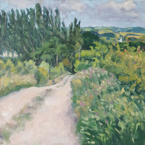Angela Goodman is an artist and writer who has exhibited prints and paintings throughout the Southwest. She has taken part in community projects and has illustrated three children’s books. Since moving to Dorset with its beautiful coast and landscapes, she has concentrated on drawing and painting outside in natural surroundings, while also making prints in the studio. She has published short stories and has recently been achieved a master’s degree in Creative Writing. Her visual work is primarily figurative and comes from a love of the contours and colours of the English countryside, the Jurassic coastline and the sea.